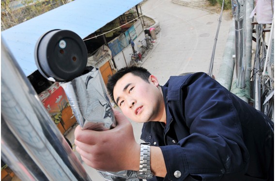 來(lái)到11號(hào)樓,胡站長(zhǎng)并沒(méi)有直接進(jìn)入用戶家,他首先爬上二樓單元屋檐上,檢查了一下進(jìn)、出單元的壓力表,一切正常后,才來(lái)到4樓王大娘家。