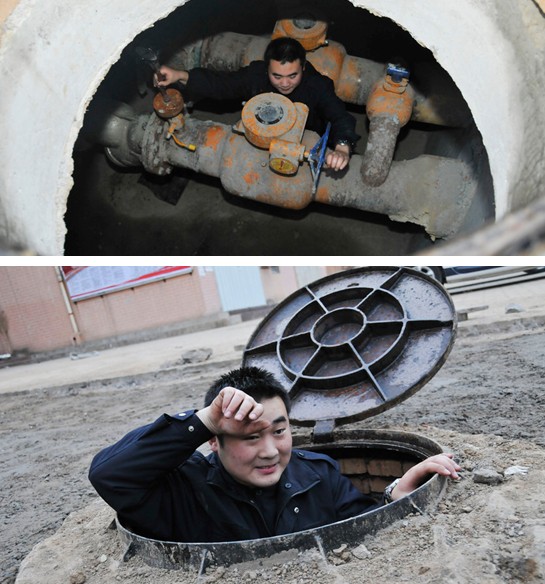 簡(jiǎn)單的午餐過(guò)后,胡站長(zhǎng)開(kāi)始了閥門(mén)井的巡視工作。當(dāng)掀開(kāi)位于濟(jì)陽(yáng)大街的主管道井蓋時(shí),一股熱浪襲來(lái)。“井內(nèi)溫度達(dá)到46度,到這里面就如同洗桑拿浴”胡站長(zhǎng)開(kāi)玩笑說(shuō)。等他從6米多深的管道井中上來(lái)時(shí),一頭的汗水。大的管道井雖然熱,但是內(nèi)部空間比較大,維修保養(yǎng)還比較容易,眾多小區(qū)開(kāi)發(fā)商自行建設(shè)的小管道井才是工作中的挑戰(zhàn),空間狹小,工作人員只能用特殊地體位更換閥門(mén)。