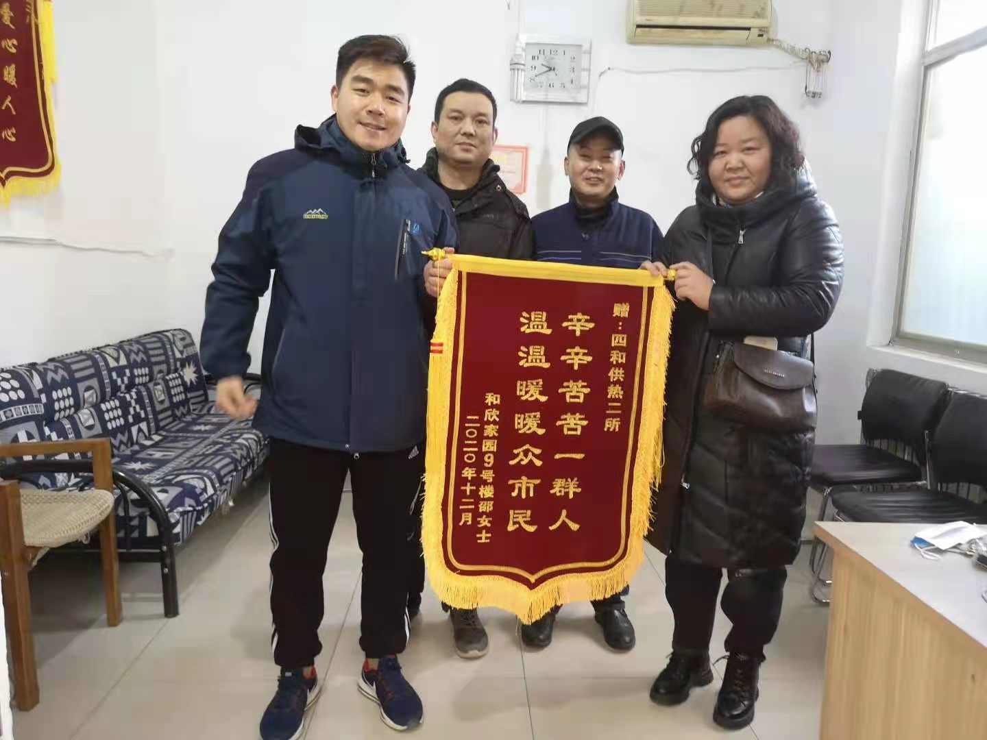 采暖季以來,水韻城、和欣家園、如意印染廠小區(qū)、胡營運河宜居佳苑小區(qū)等多個小區(qū)的業(yè)主代表陸續(xù)將錦旗送到濟(jì)寧四和供熱有限公司,對該公司為小區(qū)供暖做出的貢獻(xiàn)表示感謝。