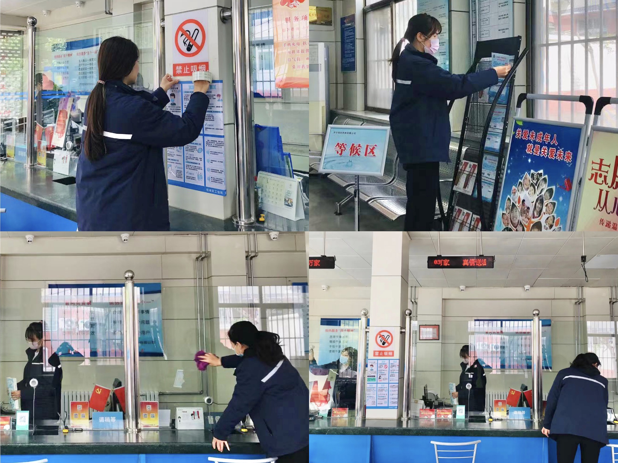 為認(rèn)真落實(shí)市委、市政府關(guān)于“創(chuàng)城”各項(xiàng)工作安排和部署,進(jìn)一步鞏固提升濟(jì)寧市創(chuàng)衛(wèi)成果,確保窗口單位營業(yè)網(wǎng)點(diǎn)創(chuàng)城任務(wù)全面落實(shí)。近日,濟(jì)寧四和供熱有限公司各營業(yè)廳陸續(xù)開展衛(wèi)生清掃工作,切實(shí)做好日常保潔、落實(shí)門前三包責(zé)任,為濟(jì)寧市迎接國家衛(wèi)生城市復(fù)審貢獻(xiàn)四和力量。