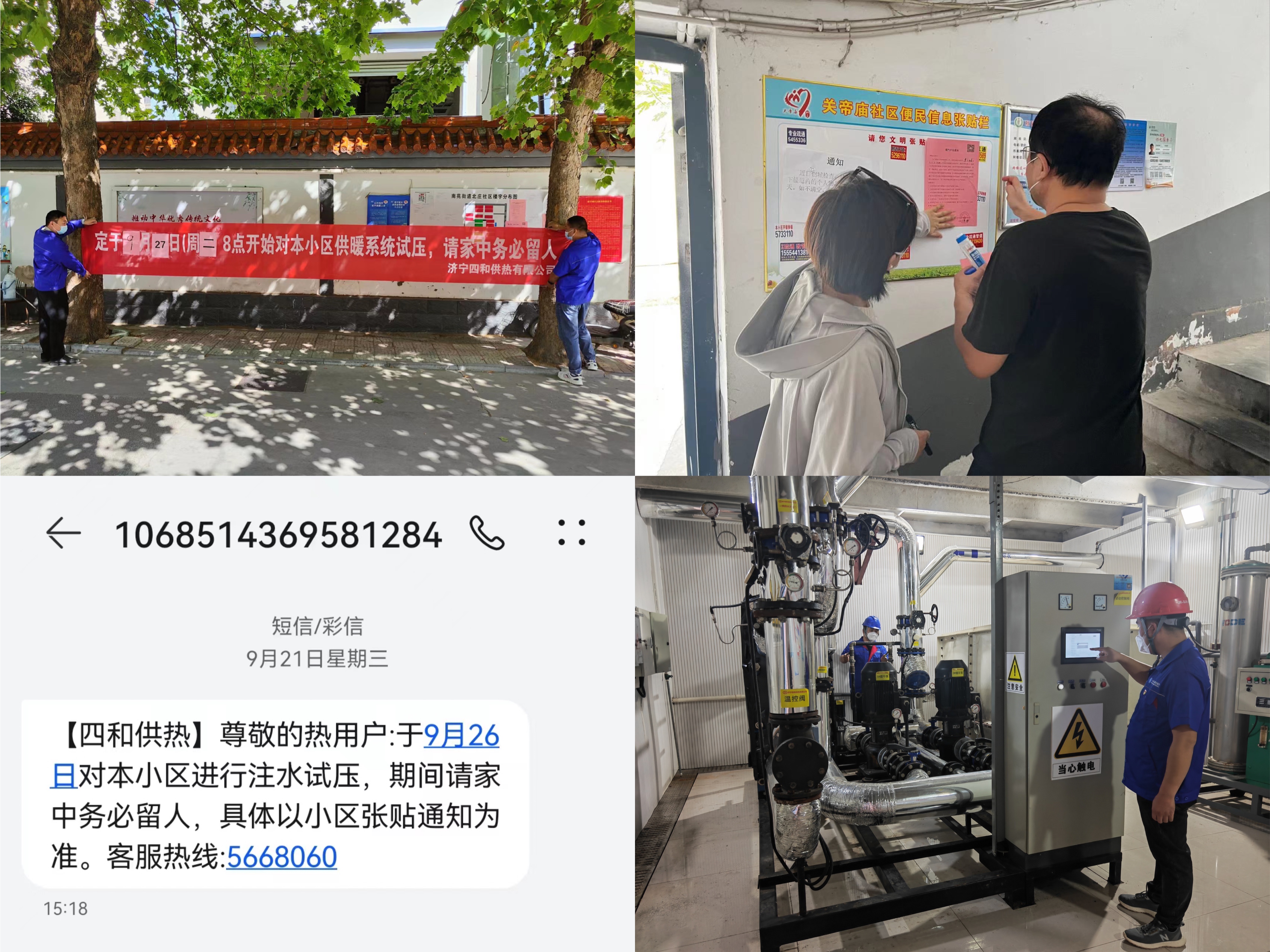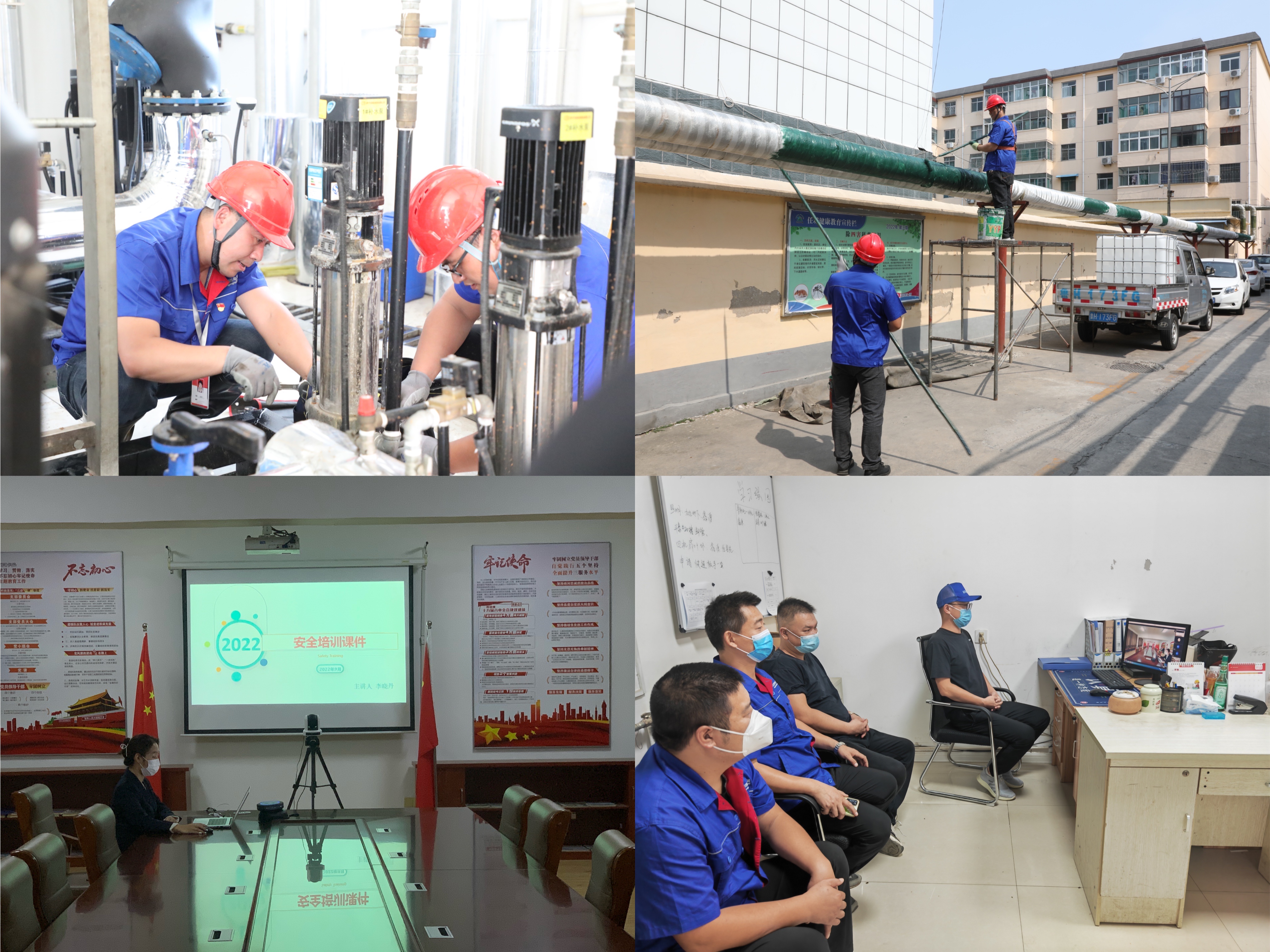 為認(rèn)真落實(shí)上級(jí)疫情防控工作部署要求,保障公司職工、外協(xié)勞務(wù)人員的安全,讓用戶更加安心、放心,公司積極組織開展線上安全生產(chǎn)及疫情防控培訓(xùn),不斷增強(qiáng)員工疫情防控意識(shí)和安全操作意識(shí);同時(shí)安排相關(guān)職能科室提前一周張貼打壓通知,懸掛打壓條幅,向小區(qū)熱用戶手機(jī)發(fā)送打壓短信通知,讓用戶能及時(shí)得知小區(qū)供熱設(shè)施注水打壓的消息,方便用戶有問題可以第一時(shí)間聯(lián)系到片區(qū)服務(wù)人員。
